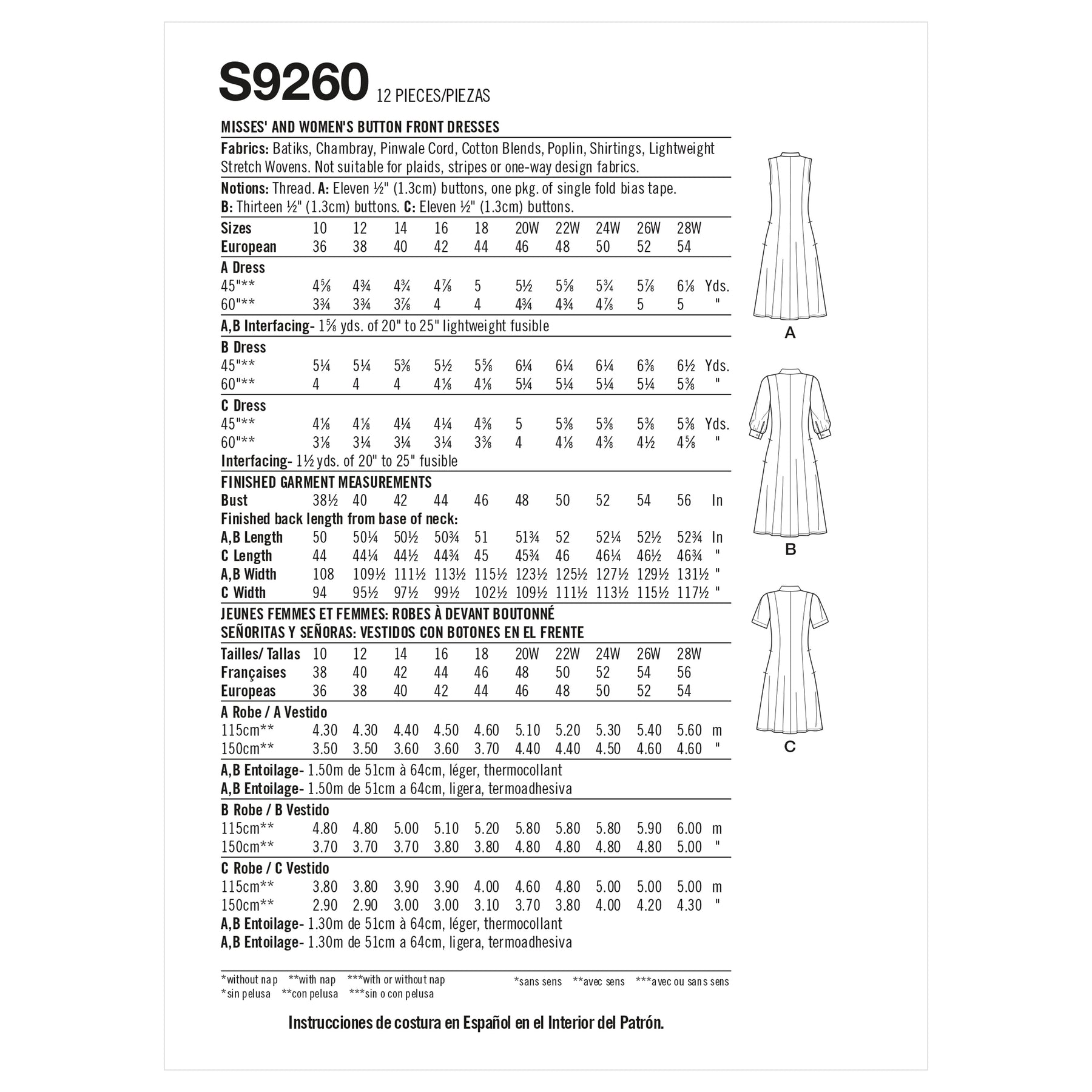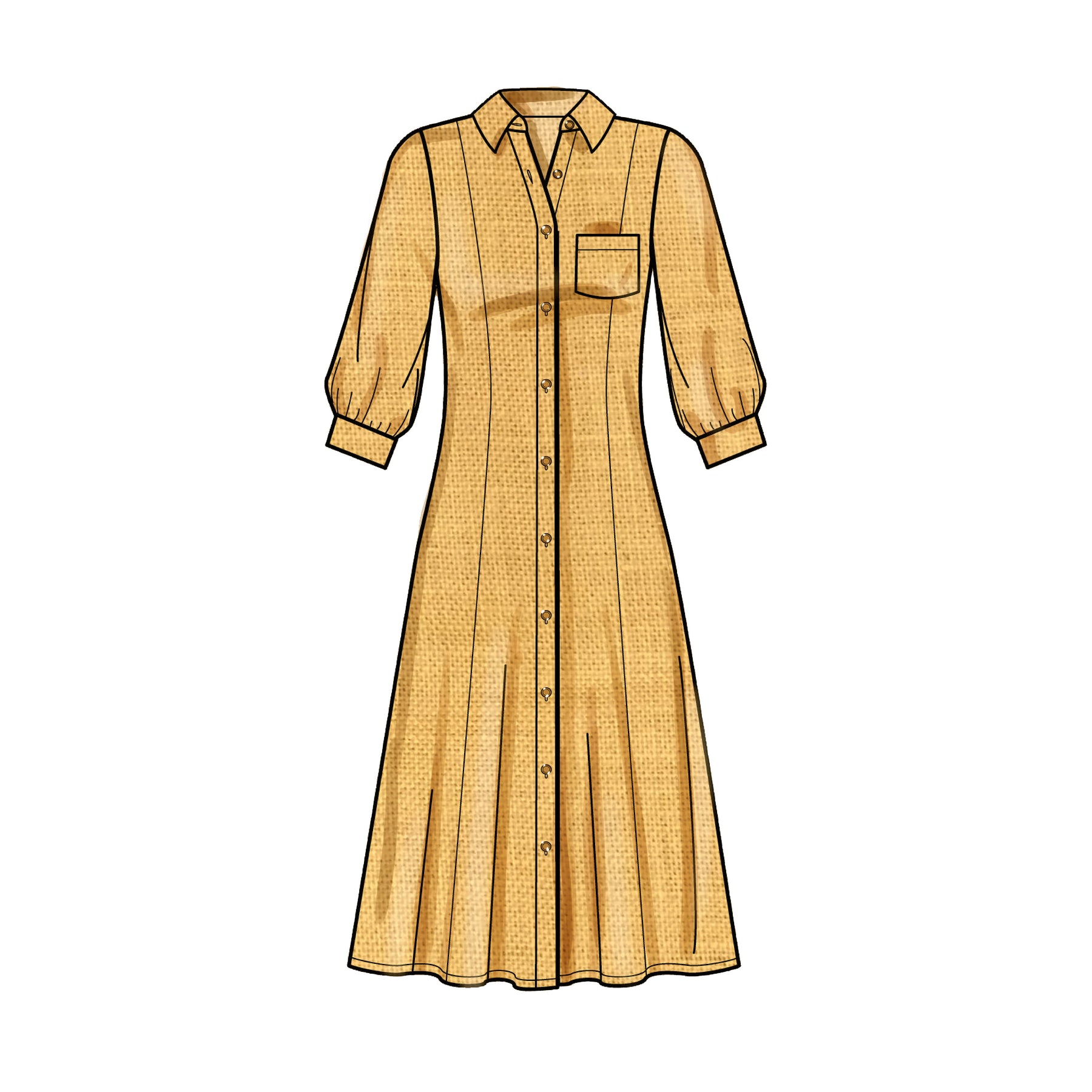 Misses' & Damenknopf Vorderkleider mit Kragen & Ärmeloptionen, Brusttasche & Seitennähtaschen.