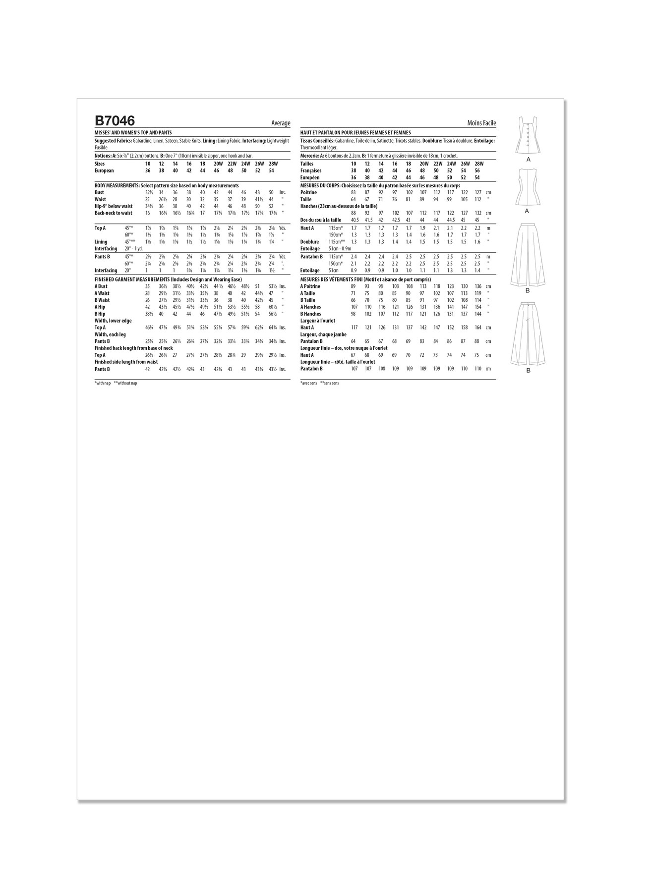 Butterick Schnittmuster B7046 Damen Top and Pants