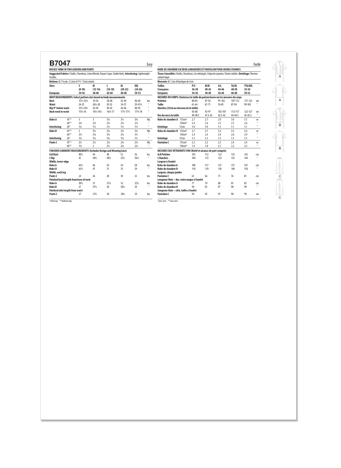 Locker sitzende Morgenmantel mit Bindungen auf der Vorderseite, aufgesetzten Taschen und verschiedenen Längen. Die Hose mit weitem Bein hat einen elastischen Bund und Seitennahttaschen.