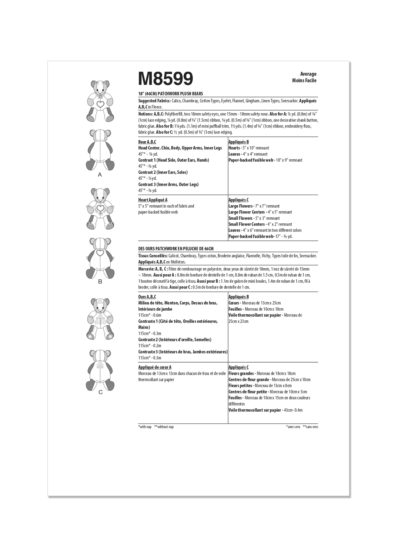 McCalls Schnittmuster M8599 Patchwork Plüschbären
