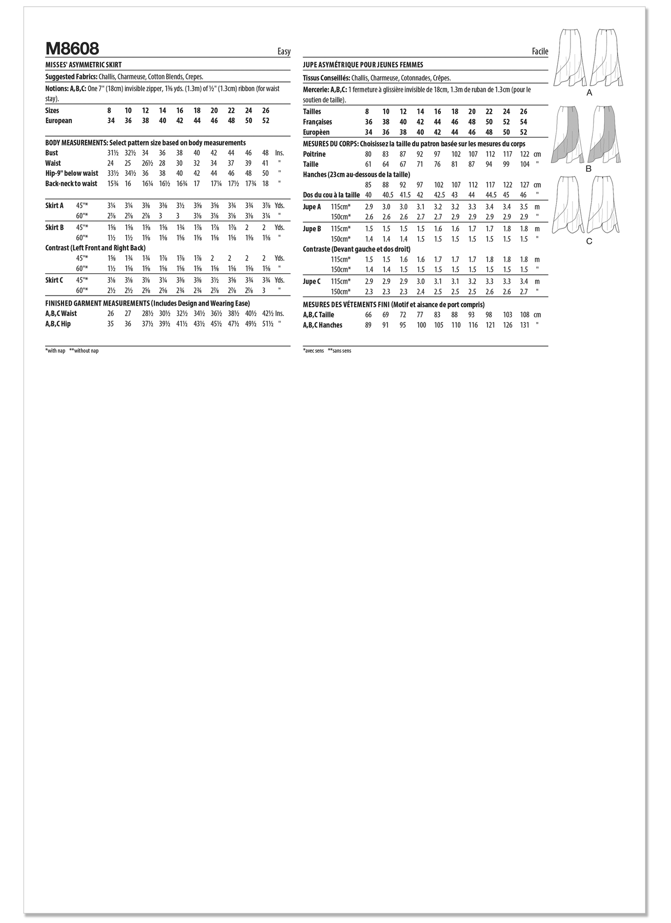 McCalls Schnittmuster M8608 Damenrock mit asymmetrischem Saum