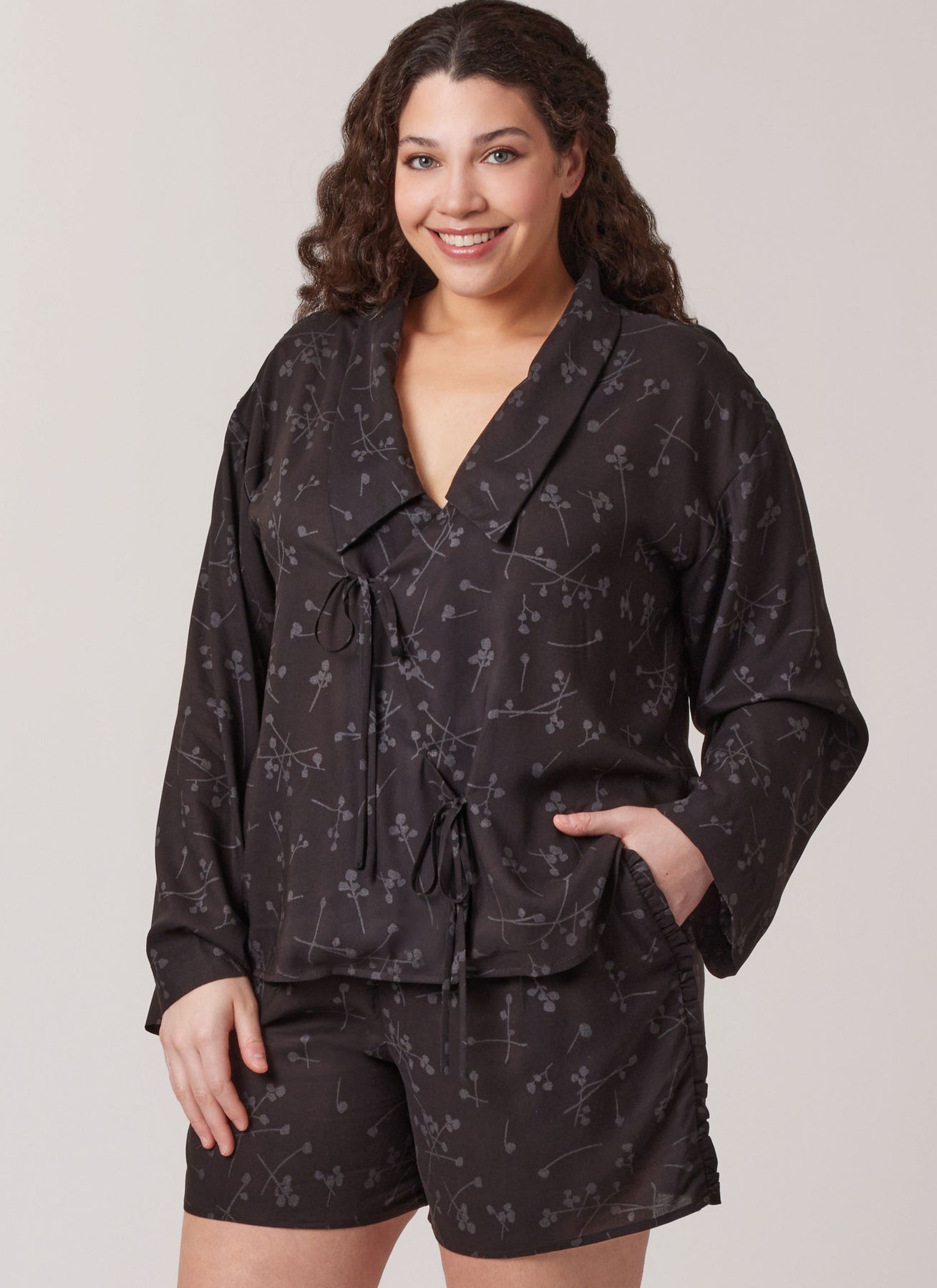 Mit dem McCall’s Schnittmuster M8612 kreierst du deinen neuen Lieblings-Pyjama – luftig, feminin und wunderbar bequem. Dieses Set enthält ein übergroßes Oberteil mit Kragen, tiefem V-Ausschnitt und Bindebändern vorne, wahlweise mit kurzen oder langen Ärmeln, sowie Shorts oder Hosen mit verspielten Rüschen, elastischem Bund und Seitentaschen. Ideal für entspannte Abende oder gemütliche Sonntage – ein Pyjama, der Komfort und Stil perfekt vereint.