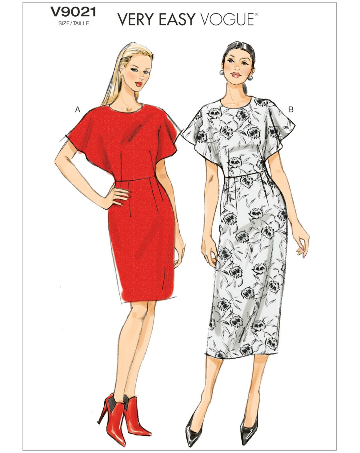 Das Vogue Patterns Schnittmuster V9021 präsentiert ein tailliertes Damenkleid mit moderner, ausdrucksstarker Linienführung.
