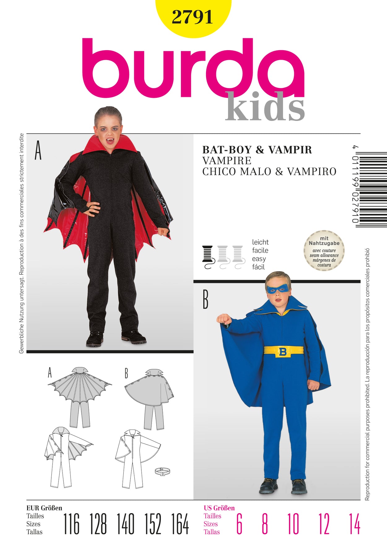 Burda Schnittmuster 2791 Vampir und Bat-Boy