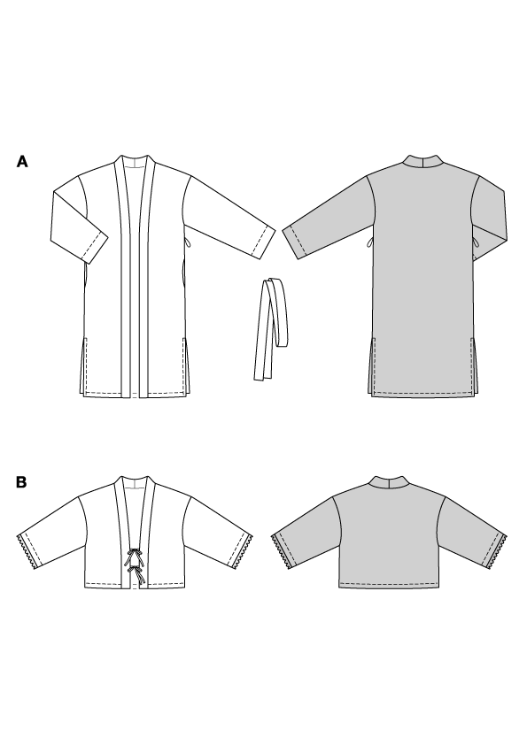 Burda Schnittmuster 5720 Damen Kimono mit Bindeband aus Satin & Jacke mit weiten Ärmeln