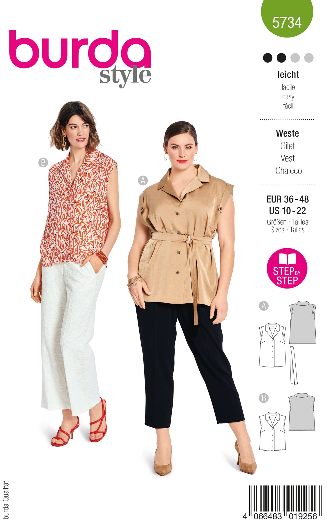 Burda Schnittmuster 5734 Damen Westen mit Gürtel & Bluse mit kleinem Reverskragen