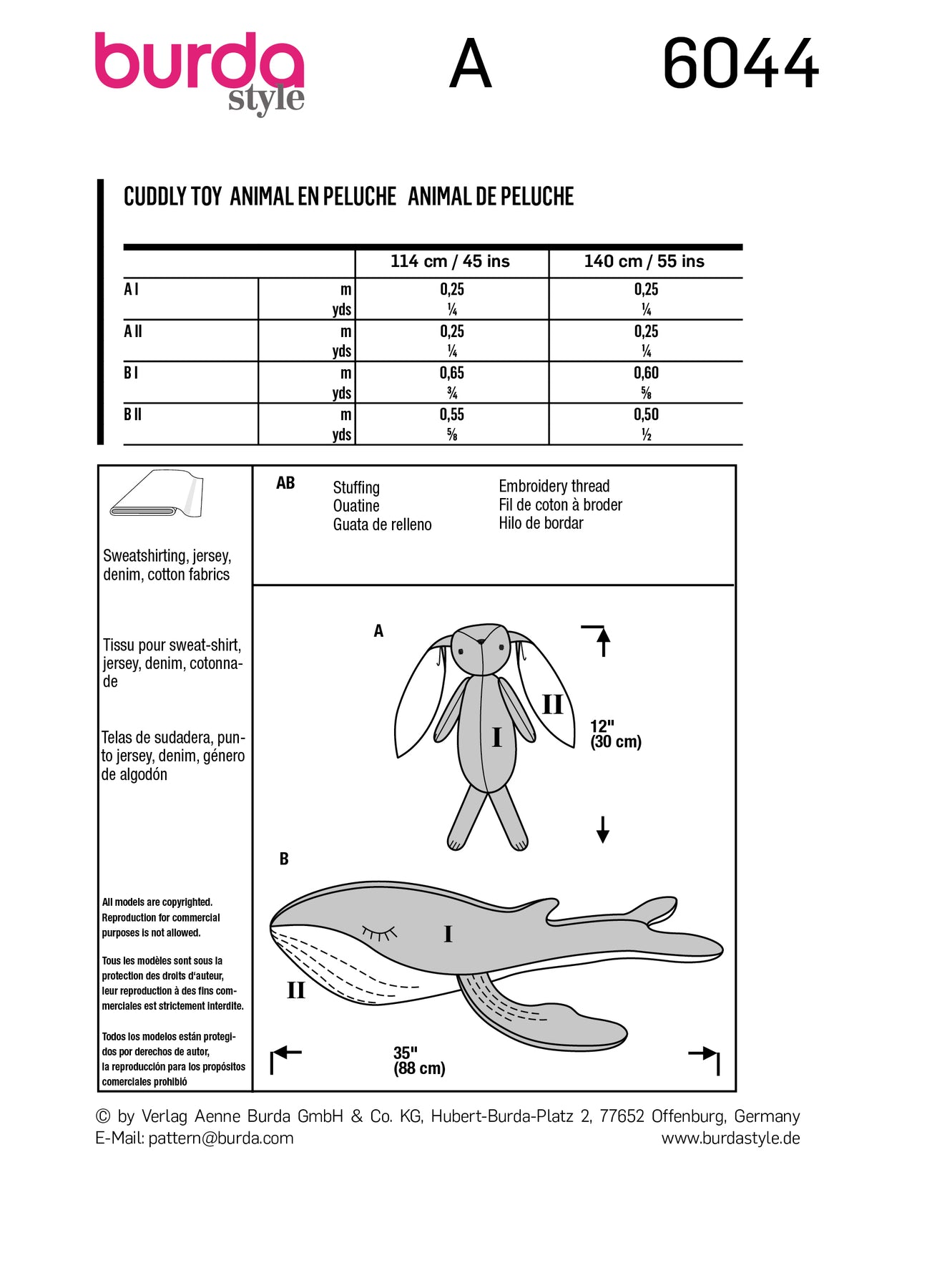 Burda Schnittmuster 6044 Kuscheltiere - Hase und Wal