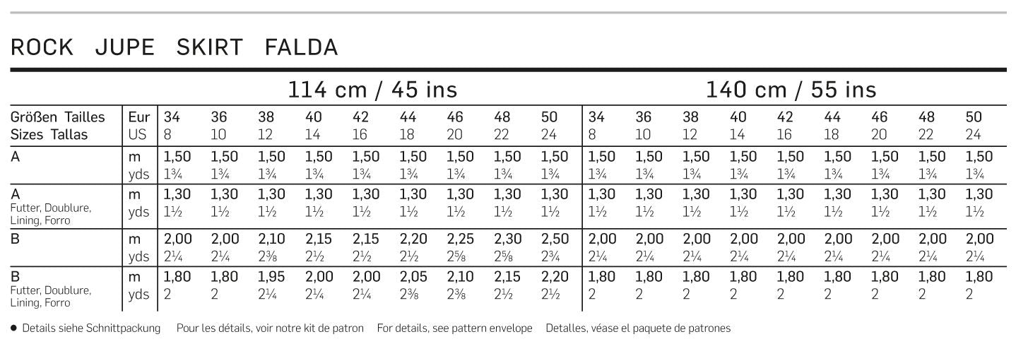 • Inklusive Nahtzugabe (außer Burda)