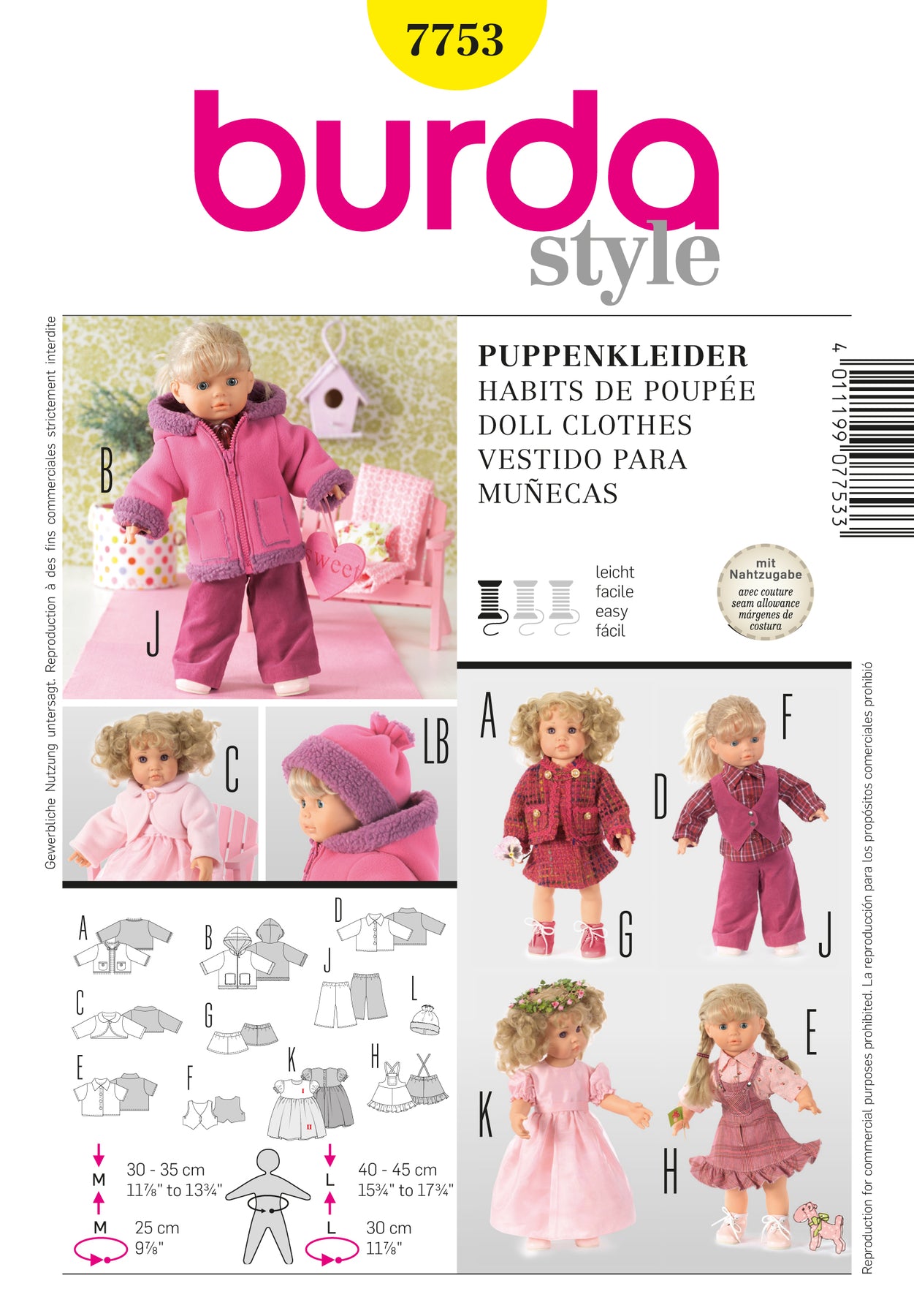 Schicke Outfits für Puppen zum Kombinieren: Vom Kostüm bis zum Ballkleid mit Bolero, von der Hose bis zur Winterjacke, dazu auch noch die passende Kopfbedeckung.