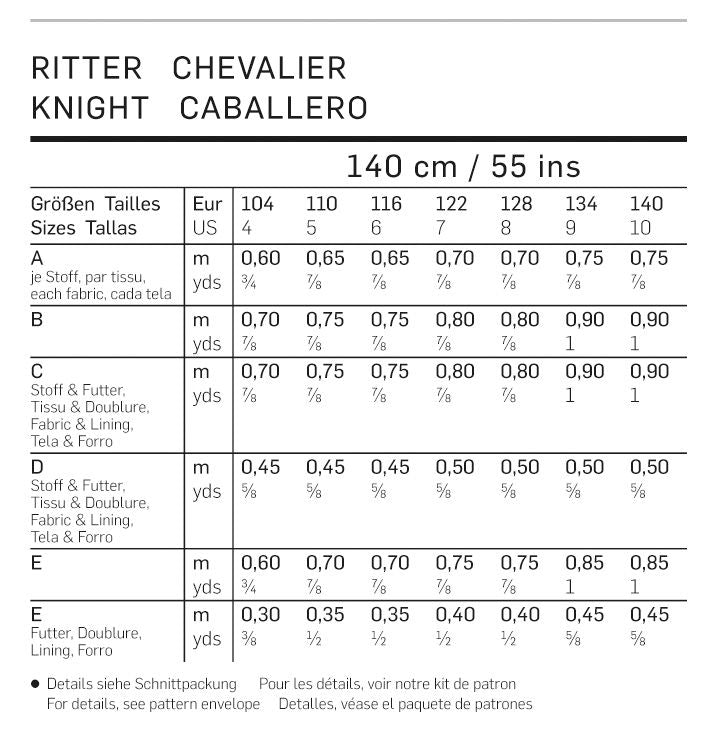 Burda Schnittmuster 9446 Ritter - Mittelalter