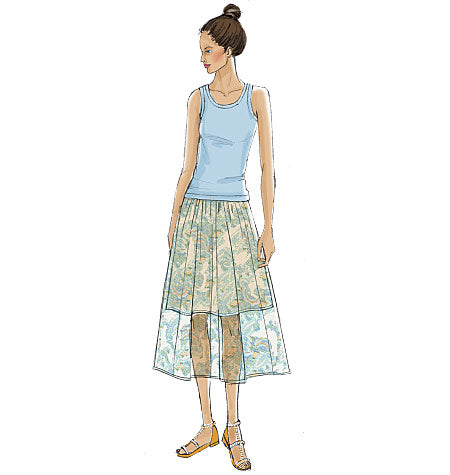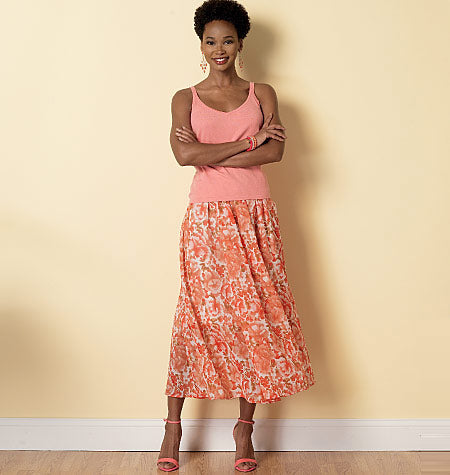 Stoffempfehlung:Chambray, Denim, Broadcloth, Gingham. Auch für A: Lace Fabrics. D: Transparente Stoffe. D Slip: Poly-Maschenware. Geeignet für leichte bis mittelschwere gewebte Stretchstoffe und stabile Maschenware.