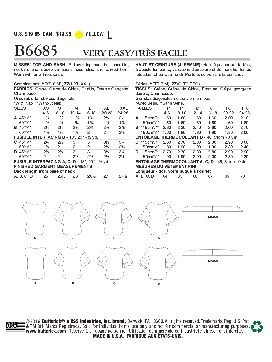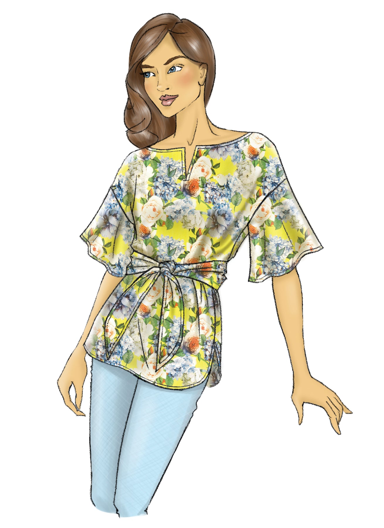 Stoffempfehlung:Crêpe, Crêpe de Chine, Challis, Doppel-Geogette, Charmeuse.