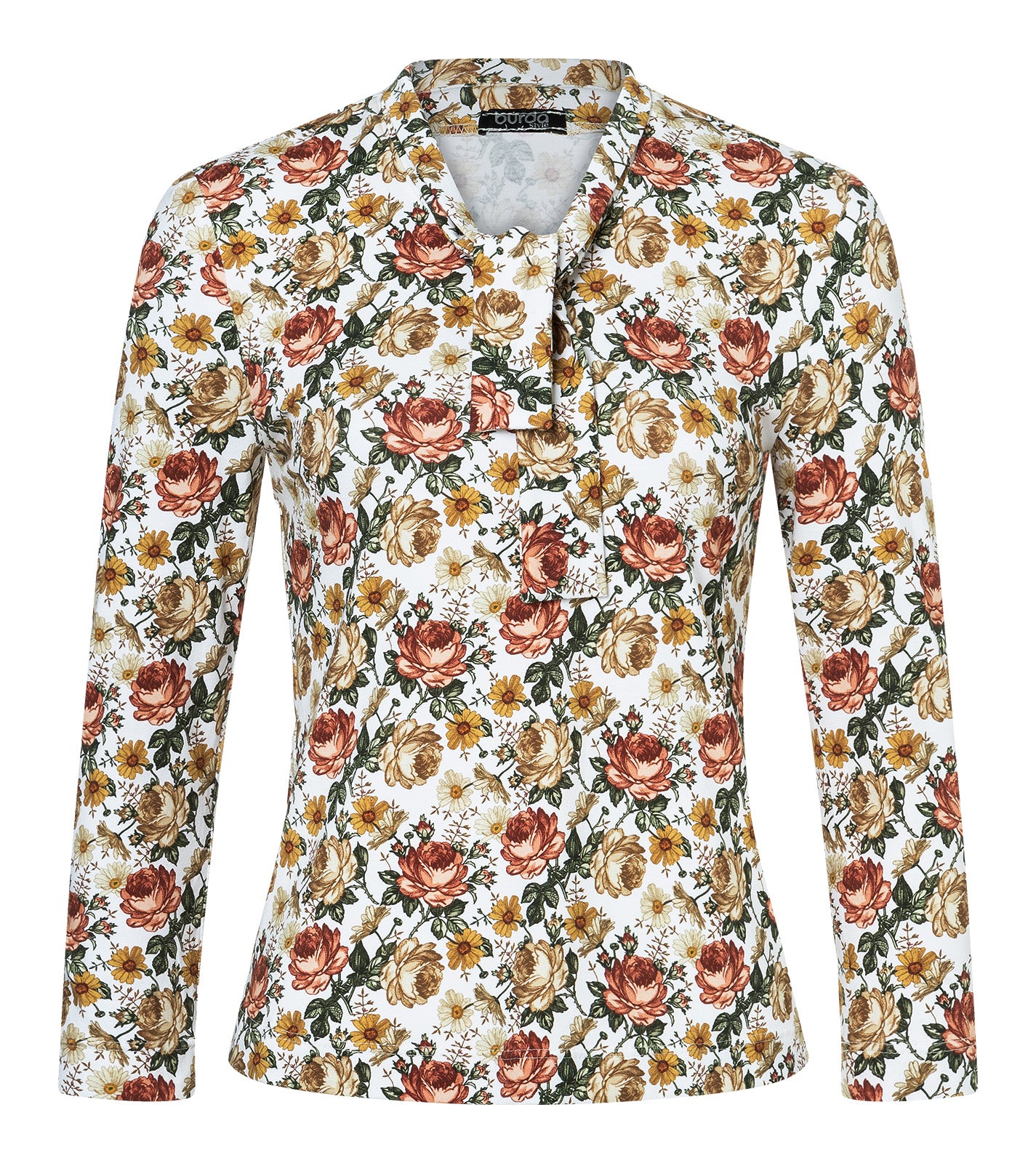 Variante C: Ein elegantes Schluppen-Shirt mit 7/8-Ärmeln und floralem Print – romantisch, modern und vielseitig kombinierbar.