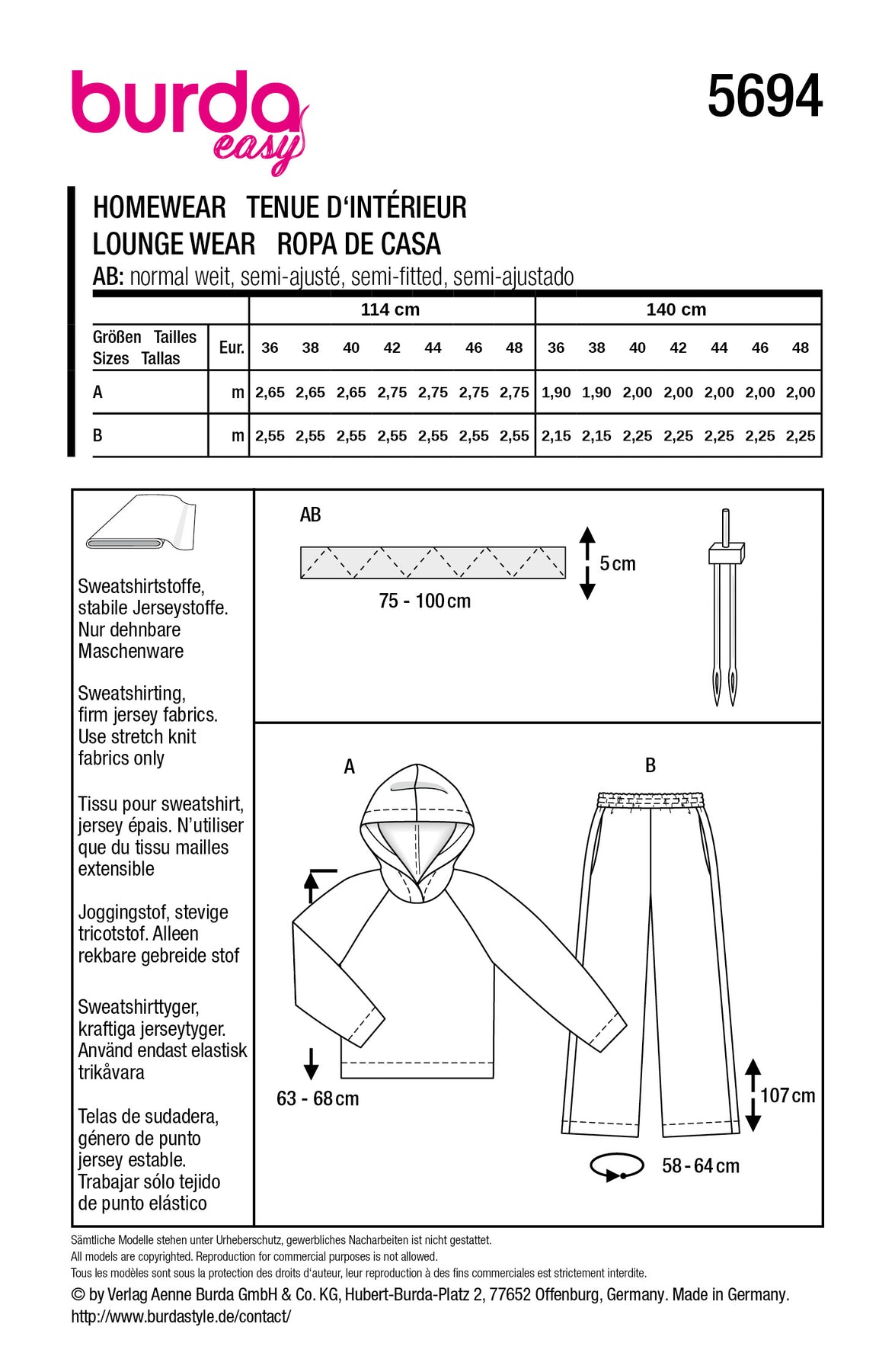 Burda Schnittmuster 5694 – Damen Homewear-Set mit Hoodie & Jogginghose
