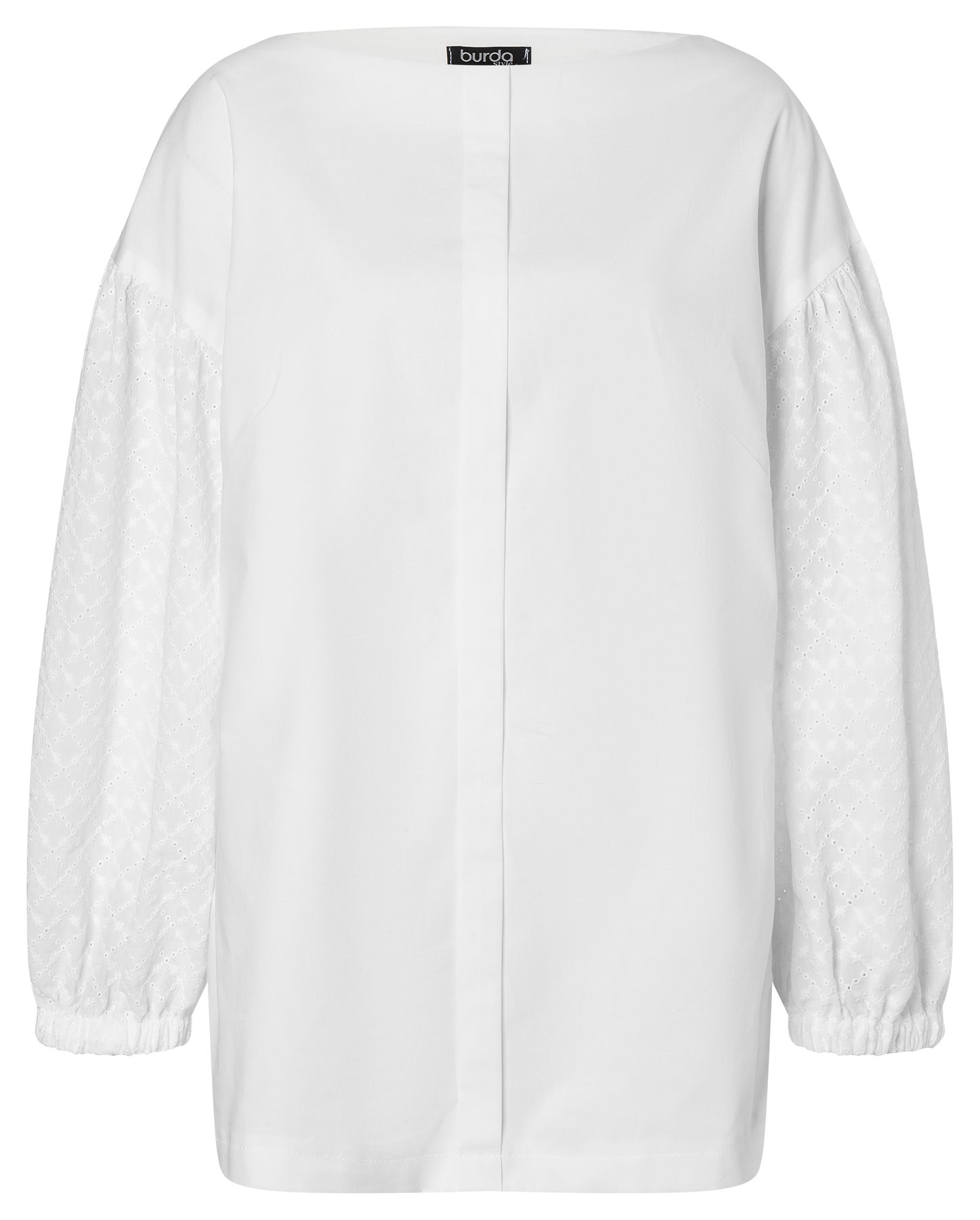 Variante B: Die klassische Hemdbluse mit Langarm, die durch zarte Lochspitze besonders edel wirkt.