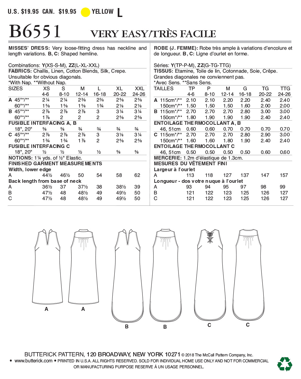 Butterick Schnittmuster B6551 Damen Kleid