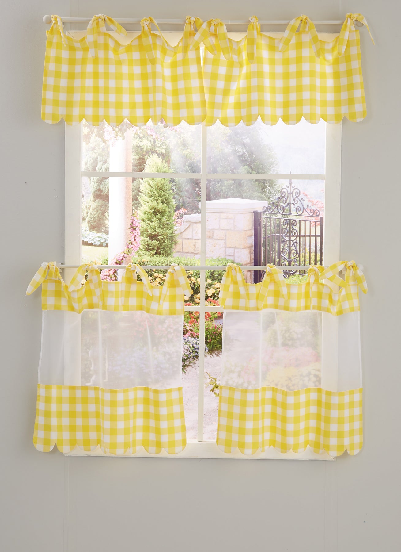 Cafévorhänge und Schürzen mit Bindebändern und Wellenkanten passen zu Fenstern mit einer Breite von 92 bis 122 cm (36"). Halbe Schürze mit gerafftem Rock, durchsichtigem, gebördeltem Überzug und gebundenen Taschen passt den meisten Erwachsenen. Gefütterte, gepolsterte Gerätebezüge haben kontrastierende Stoffbahnen und gebundene Kanten. Teewärmer und Ofenhandschuh sind gefüttert, gepolstert und mit einer Bindung versehen. Die Tischdecke mit Wellenschliff misst 64 cm (25") x 36 cm (13,5"). Die Handtücher haben überschnittene Bänder und eine Option zum Anbinden. Das Muster enthält optionale Kirschen- und Blätterapplikationen als zusätzlichen Akzent für jedes Stück.