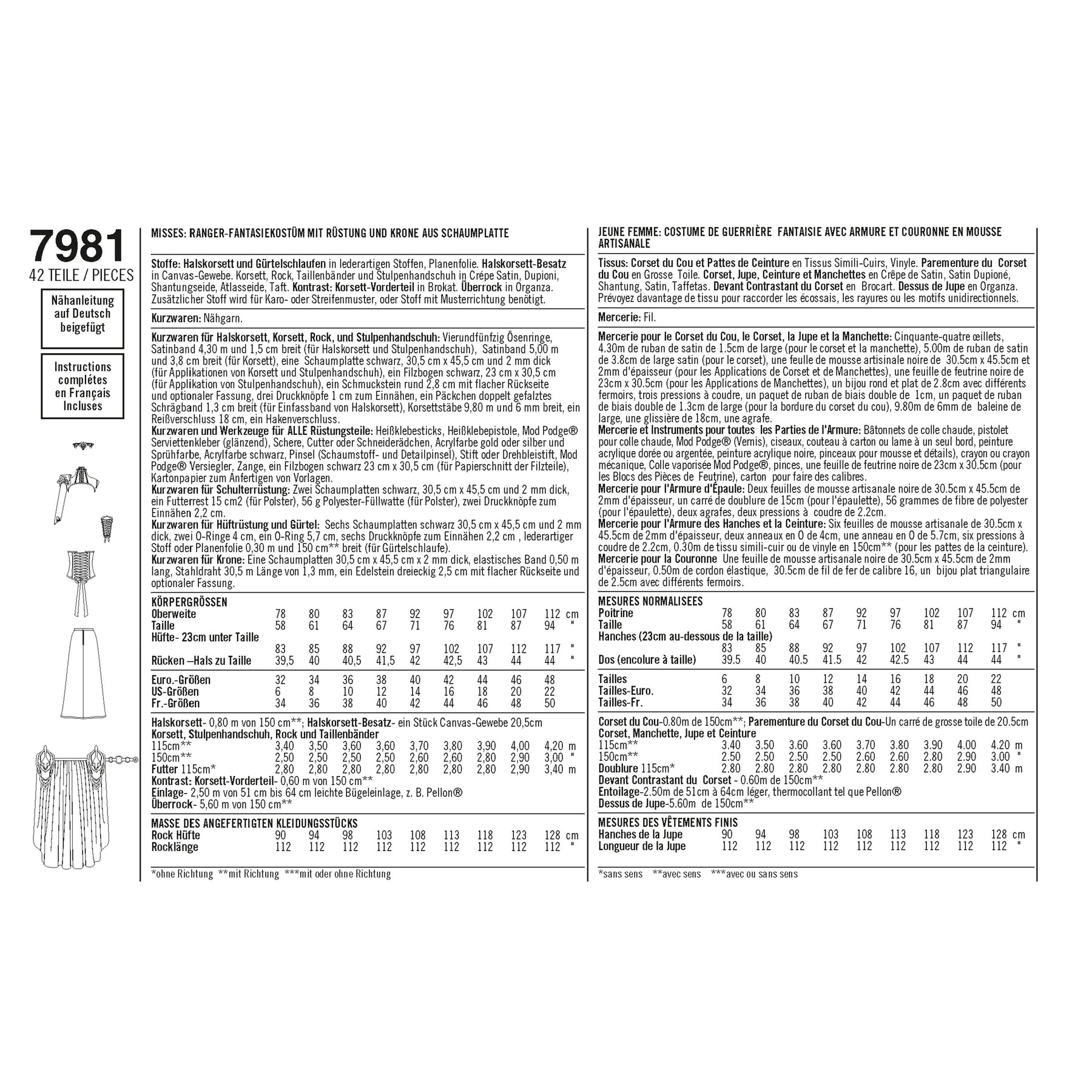 • Inklusive Nahtzugabe (außer Burda)
