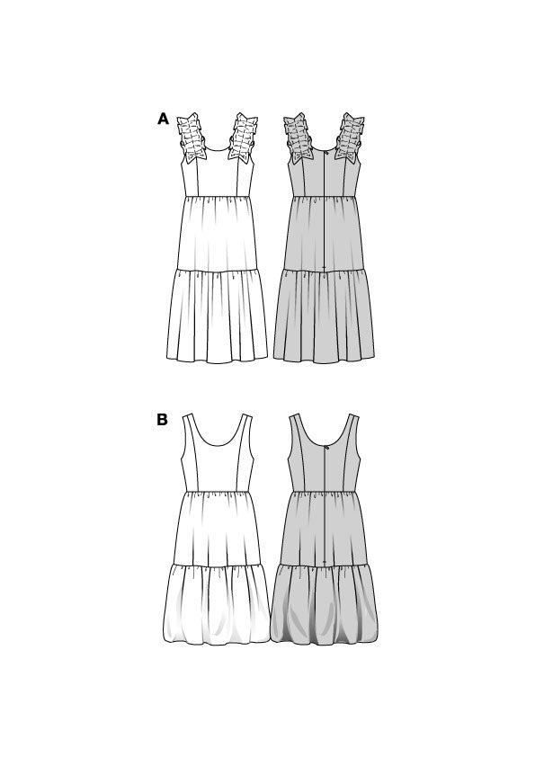 Stoffempfehlung:A: Baumwollstoffe, Kreppstoffe, Mischgewebe, B: Taft AB: Vlieseline Formband Reißverschluss nahtverdeckt
