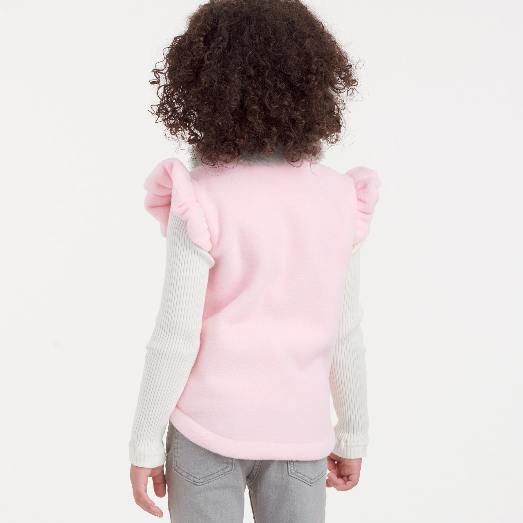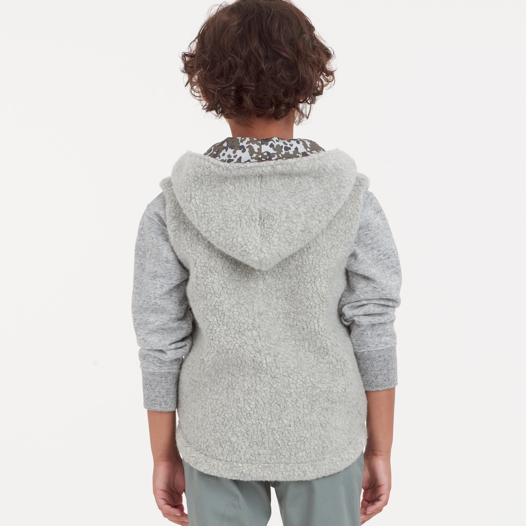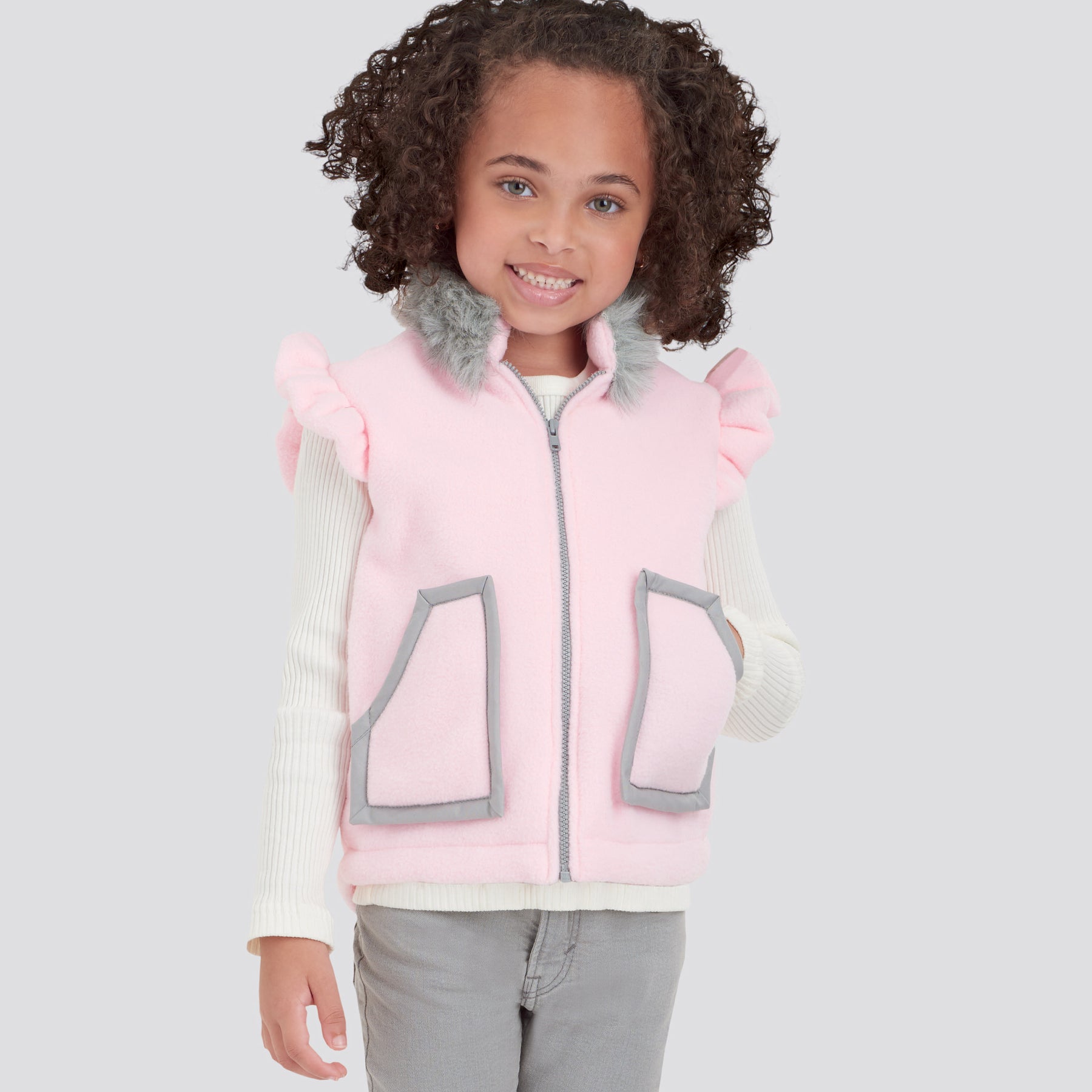 Kinderweste mit Reißverschluss und Kragen- und Kapuzenvarianten.