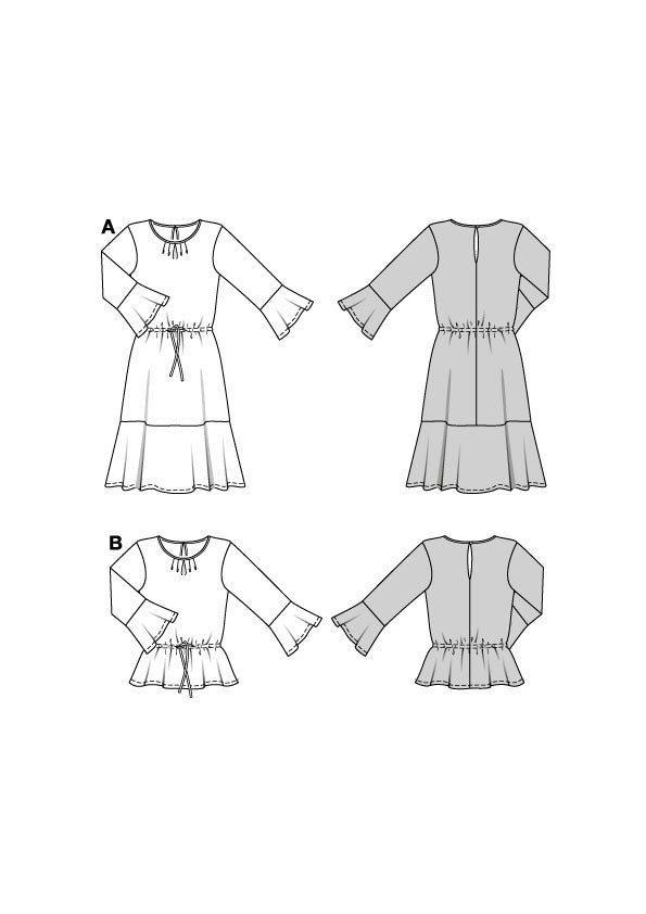 Stoffempfehlung:Leichte Baumwollstoffe, Seide, Kreppstoffe, Viskose 1 kleiner Knopf
