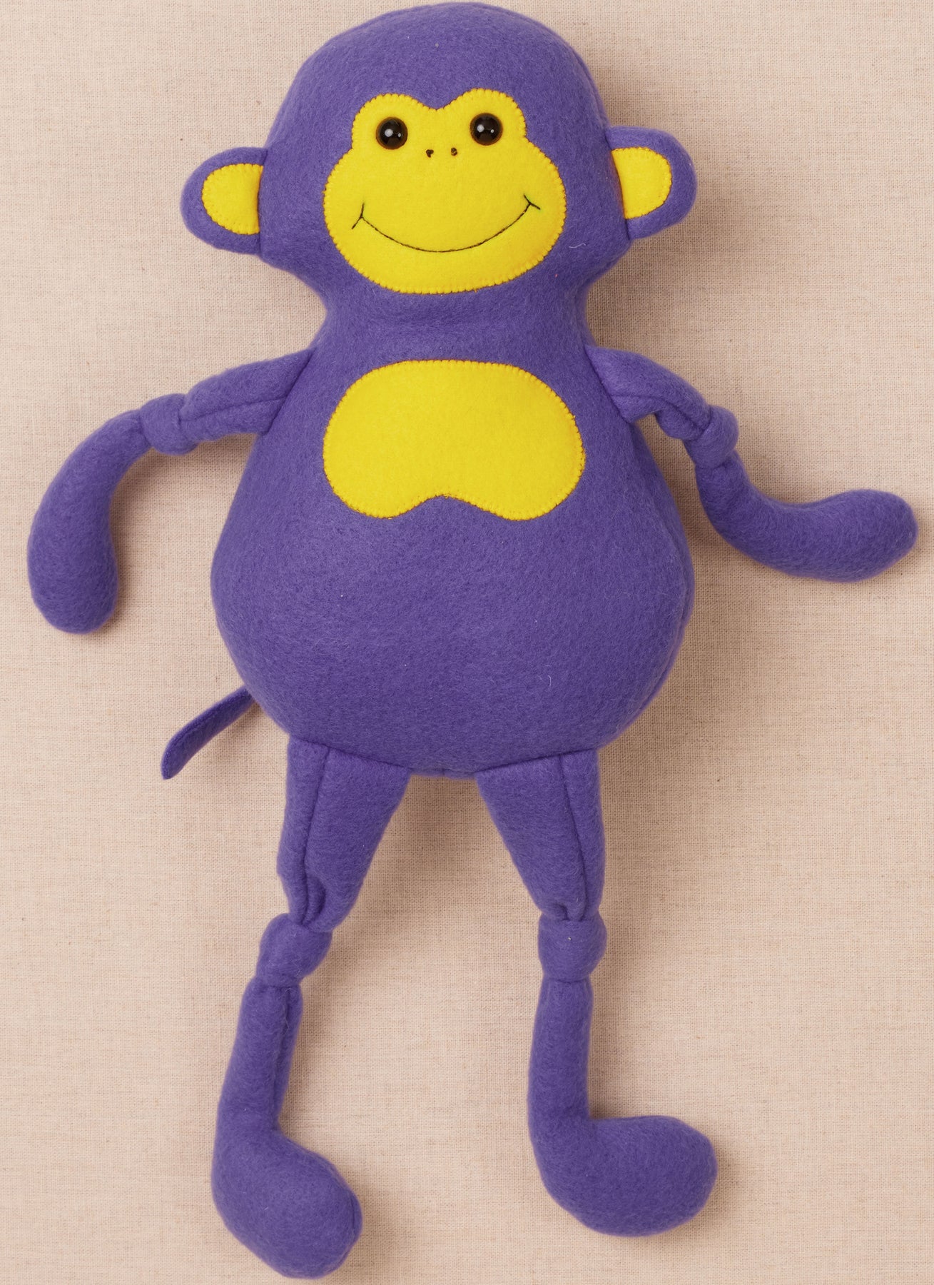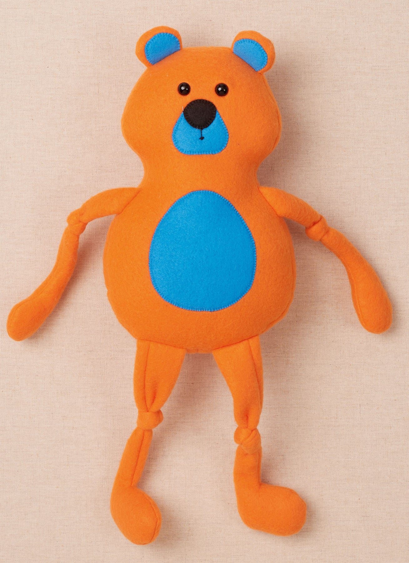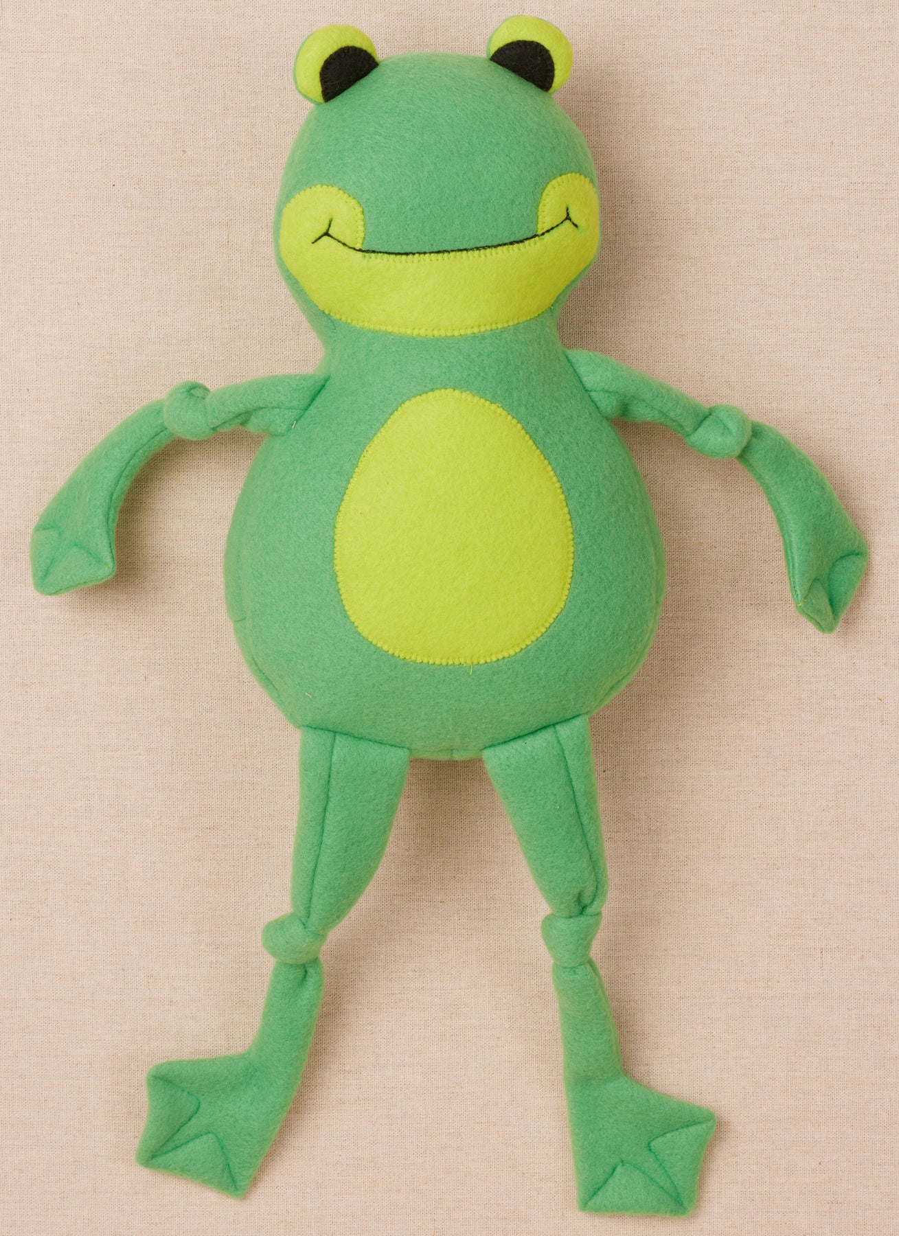 17 Bär, Frosch, Affe und Kuh haben verknotete Ellbogen- und Kniegelenke. Applikationen sorgen für süße Details. Durch einfaches Nähen entstehen in Ansicht B Hände und Füße aus Netz und in Ansicht D Hufe.