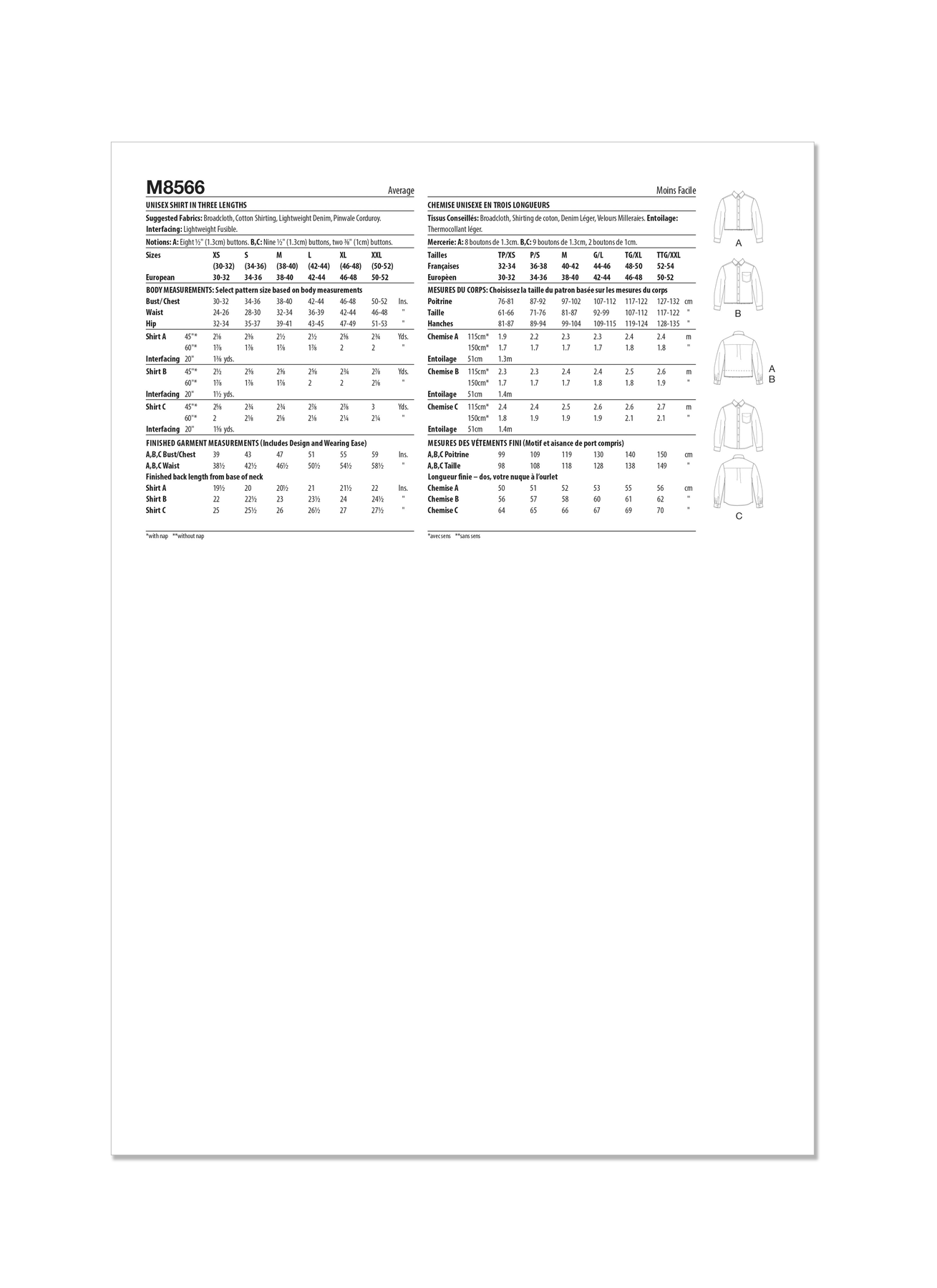 McCalls Schnittmuster M8566 Shirt in 3 Längen