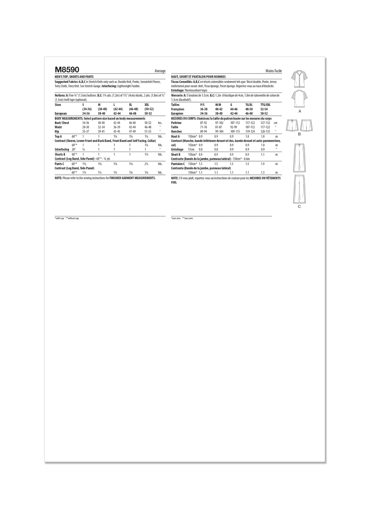 McCalls Schnittmuster M8590 Oberteil, Shorts und Hosen für Herren