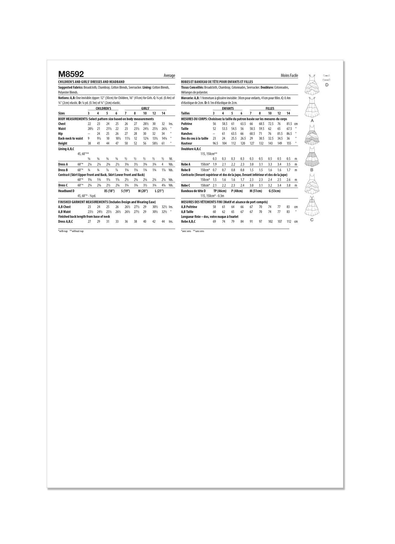 McCalls Schnittmuster M8592 Kinder- und Mädchenkleider und Stirnbänder