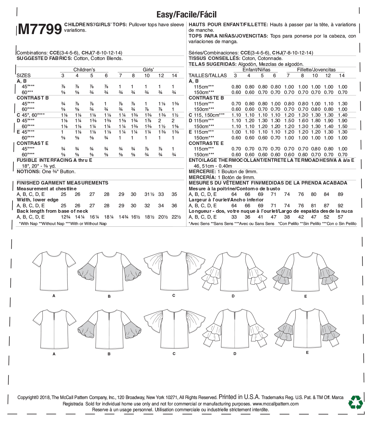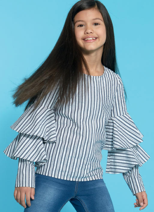 Dieses bezaubernde Sommerblüschen mit verspielten Rüschenärmeln und einem eleganten hohen Rundausschnitt ist ideal für Mädchen, die stilvoll und bequem gekleidet sein möchten. Das Schnittmuster von McCalls M7799 ermöglicht es, sowohl kurze als auch lange Ärmel zu nähen, sodass das Top an kühleren Sommertagen perfekt mit Jeans kombiniert werden kann. Die luftige Passform sorgt für angenehmen Tragekomfort, während die liebevollen Details dem Outfit einen charmanten Akzent verleihen. Ein vielseitiges Kleidungsstück, das sich leicht an verschiedene Wetterlagen und Anlässe anpassen lässt.