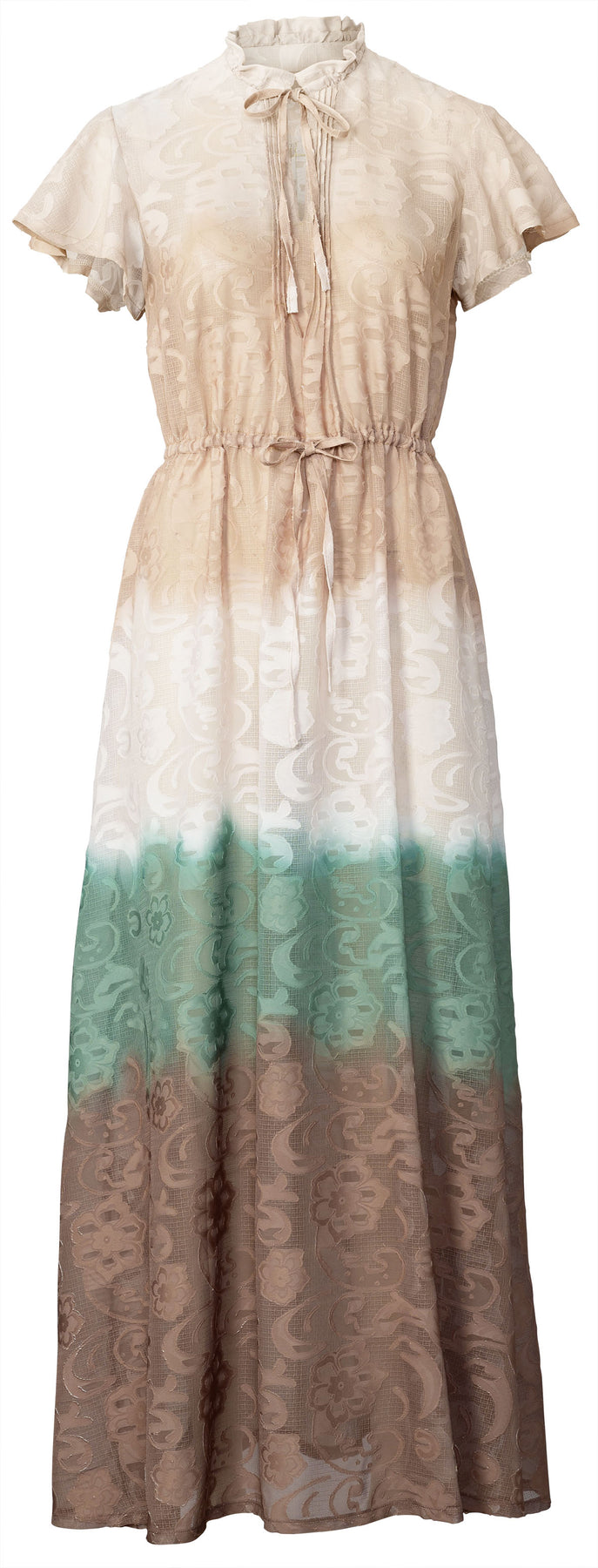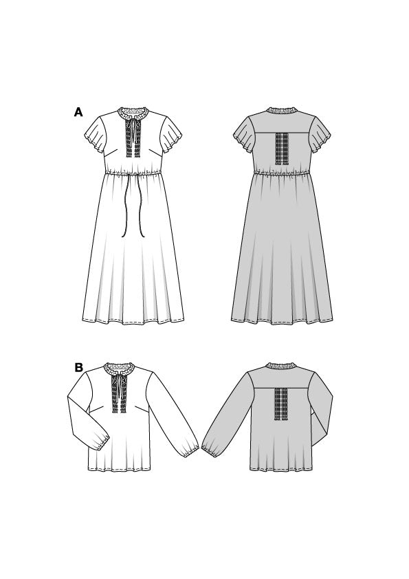 Dieses Maxikleid strahlt nur so vor femininer Eleganz. Es schmeichelt mit kleinem Stehkragen und zarten Flügelärmeln und kann mit dem Tunnelzug um die Taille auch wunderbar die Figur betonen. Mit einem Tunnelzug lässt sich auch der Stehkragen des Hemds im Plastron-Stil leicht raffen und mit den kleinen Falten am Ausschnitt entsteht ein süßer Look. Ein burda style Schnittmuster zum Verlieben!
