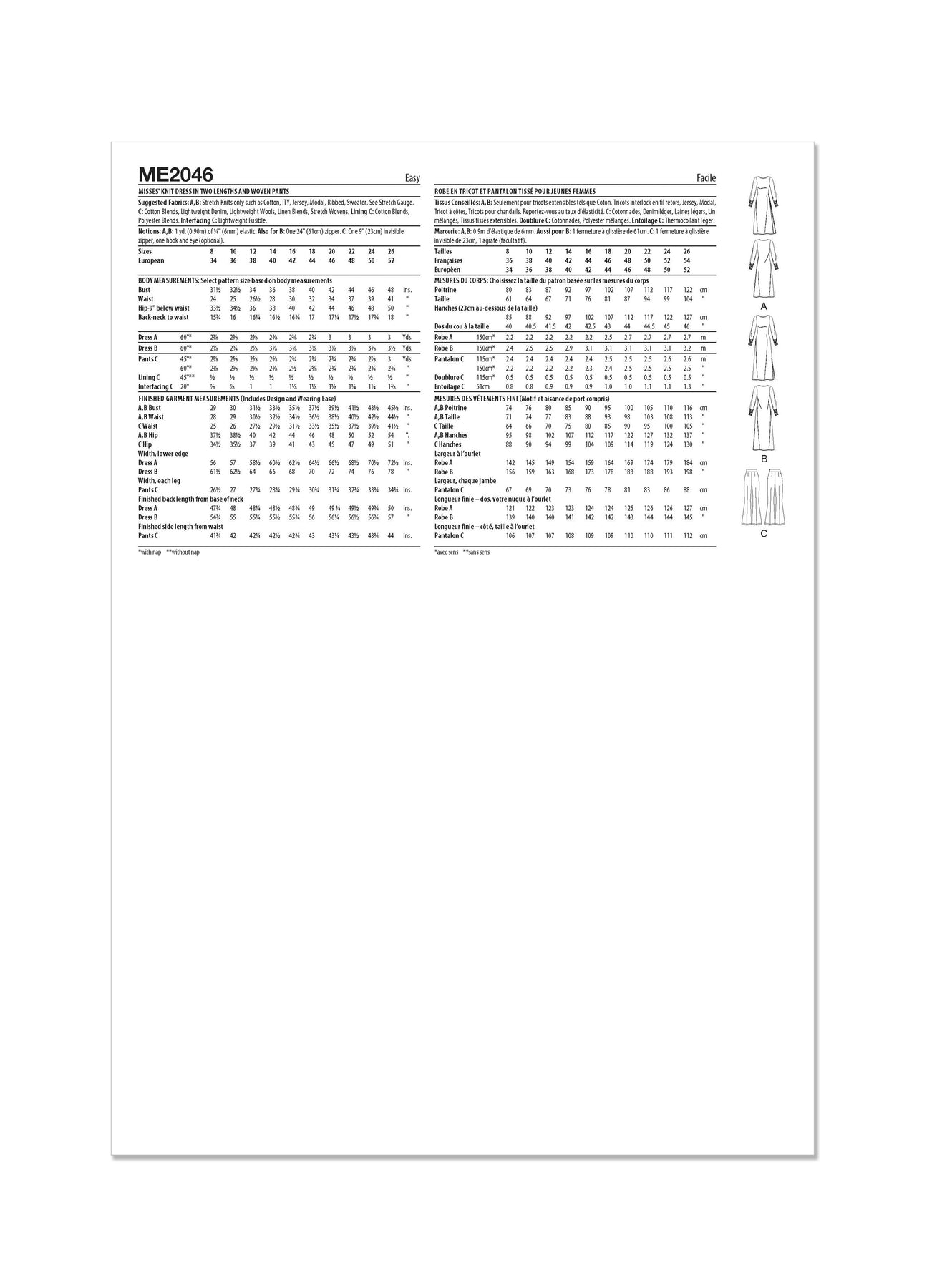 Stoffempfehlung:A,B: Nur Stretch-Strickwaren wie Baumwolle, ITY, Jersey, Modal, Rippenstrick, Pullover. Siehe Stretch Gauge. C: Baumwollmischungen, leichter Denim, leichte Wolle, Leinenmischungen, Stretch-Webstoffe. Futter C: Baumwollmischungen, Polyestermischungen. Einlage C: Leichtes Fixiermaterial.