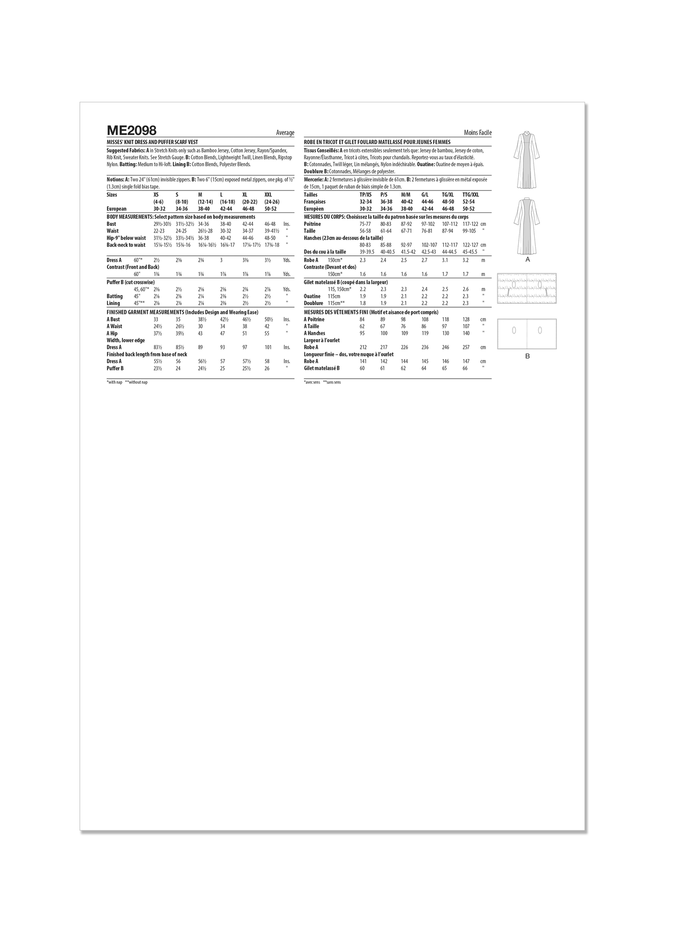 Stoffempfehlung:A nur bei Stretch-Strickwaren wie Bambus-Jersey, Baumwoll-Jersey, Rayon/Spandex, Rippenstrick, Pullover-Strickwaren. Siehe Stretch Gauge. B: Baumwollmischungen, leichter Twill, Leinenmischungen, Ripstop-Nylon. Wattierung: Mittel bis hochflorig. Futter B: Baumwollmischungen, Polyestermischungen.