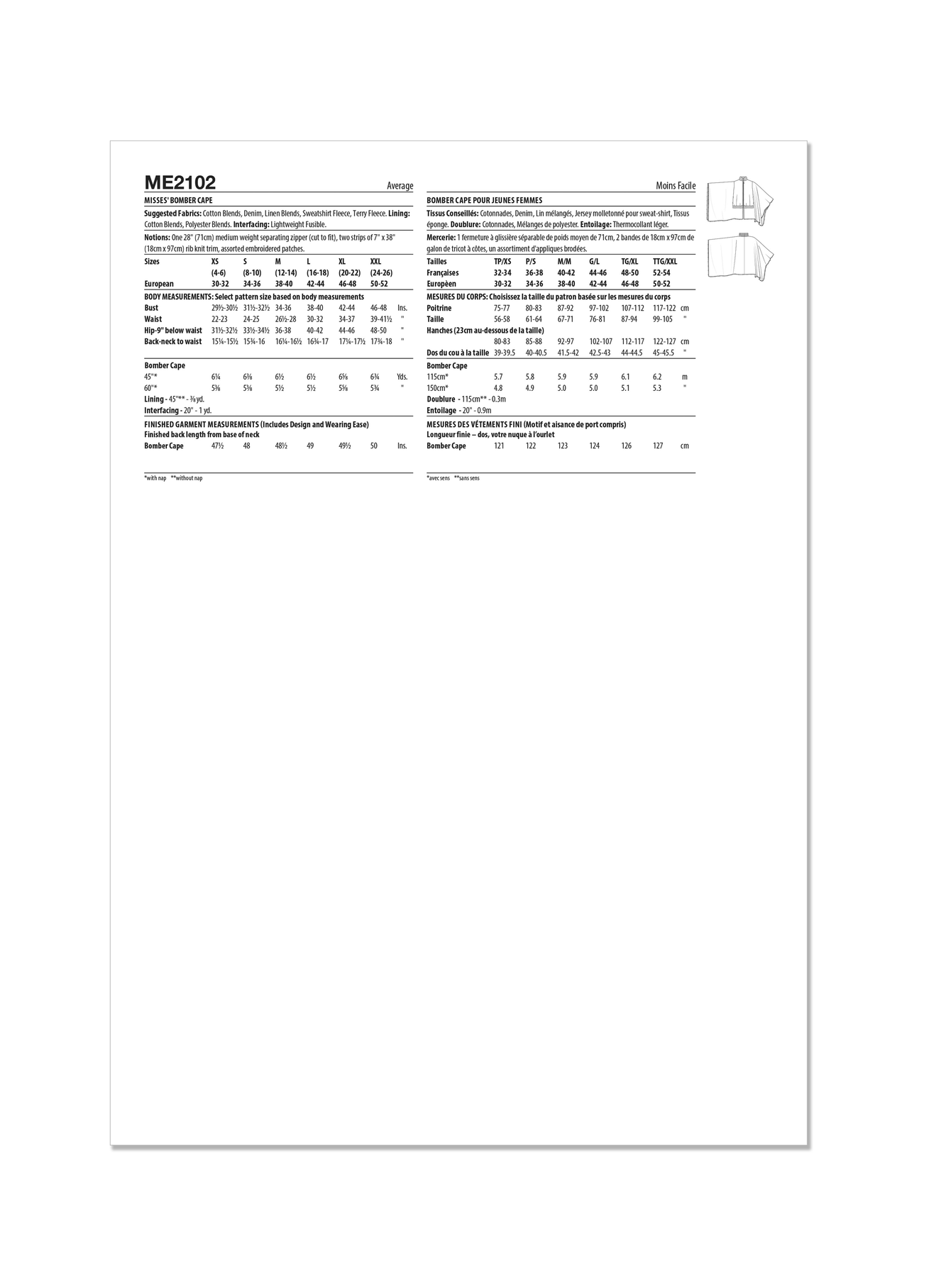 Stoffempfehlung:Baumwollmischungen, Denim, Leinenmischungen, Sweatshirt-Fleece, Frottee-Fleece. Futter: Baumwollmischungen, Polyestermischungen. Einlage: Leichtes Fixiermaterial.