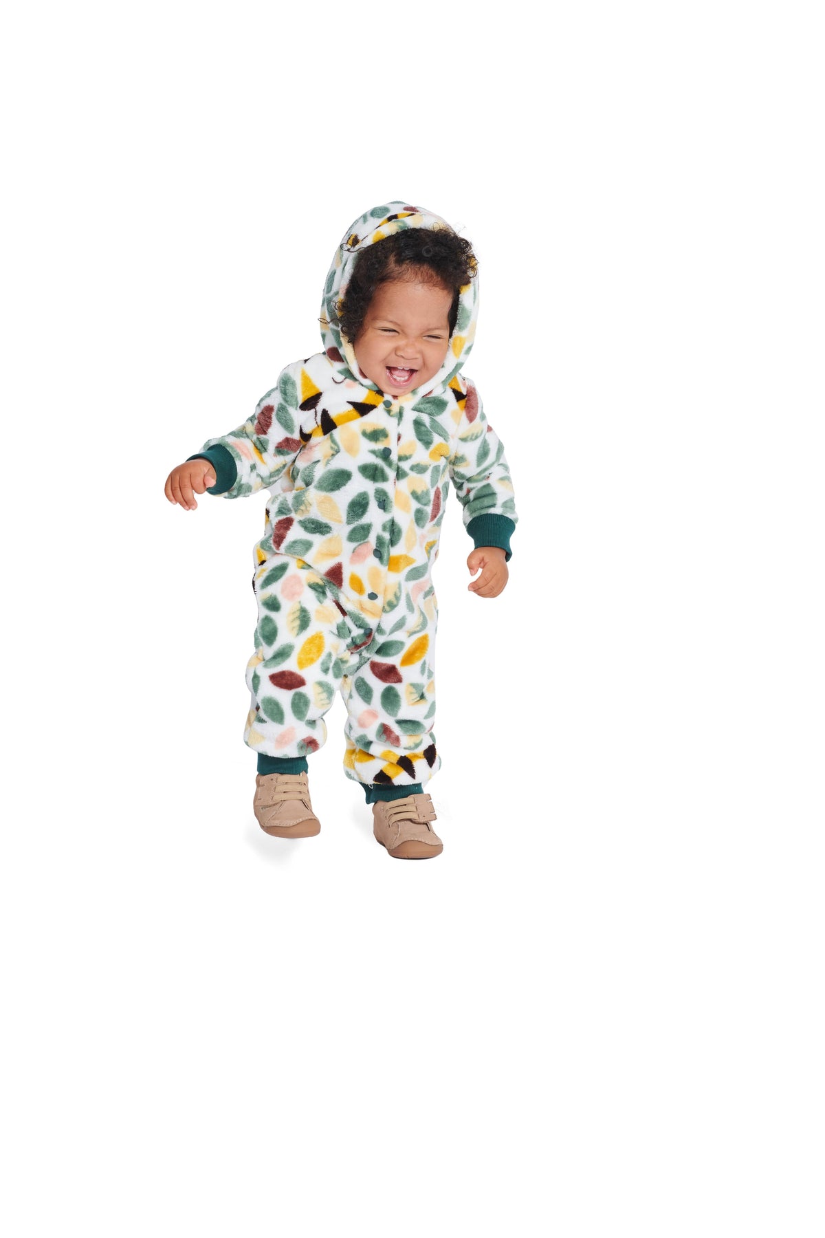So praktisch und so süß! Overalls mit komplett aufknöpfbaren inneren Beinkanten machen den Windelwecksel ganz easy. B mit Ärmel- und Saumbündchen. Beide mit Kapuze und großzügiger Verschlussleiste.