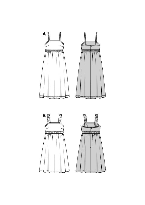 Stoffempfehlung:Baumwollstoffe, Viscose, Leinen A: Einlage, Trägerband, Nahtreißverschluss B: Einlage, Band, Nahtreißverschluss