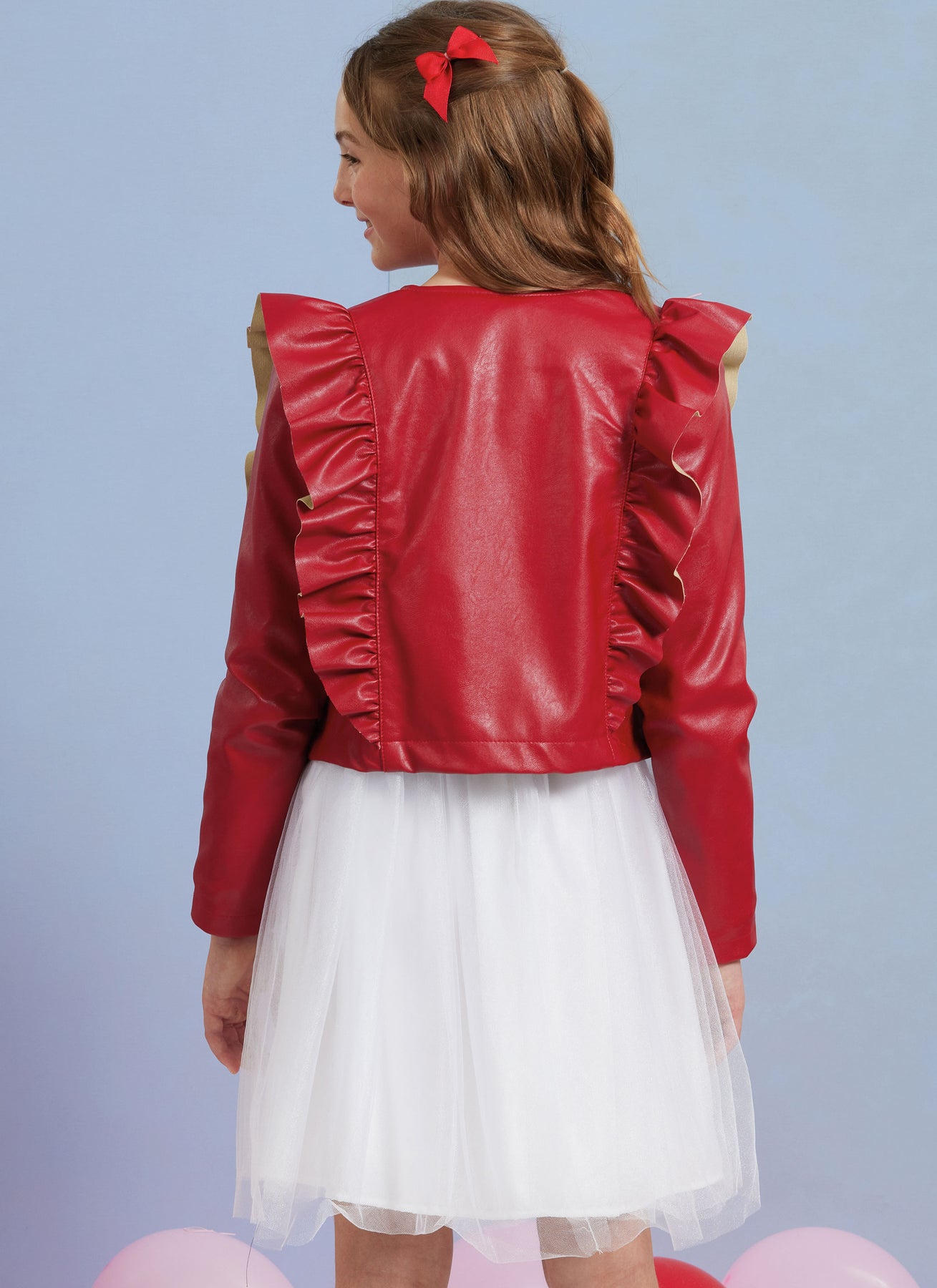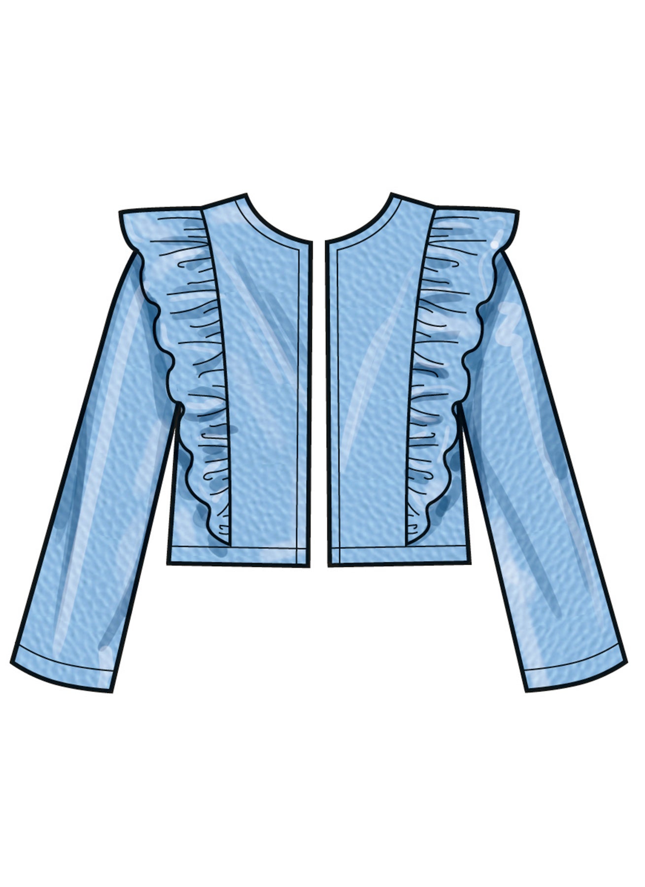Sweatshirt mit gerafften Schultern, eine Jacke mit Rüschen und zwei verschiedene Röcke. Empfohlene Stoffe:Baumwolle, Strick und Satin. Schwierigkeitsgrad: Fortgeschritten.