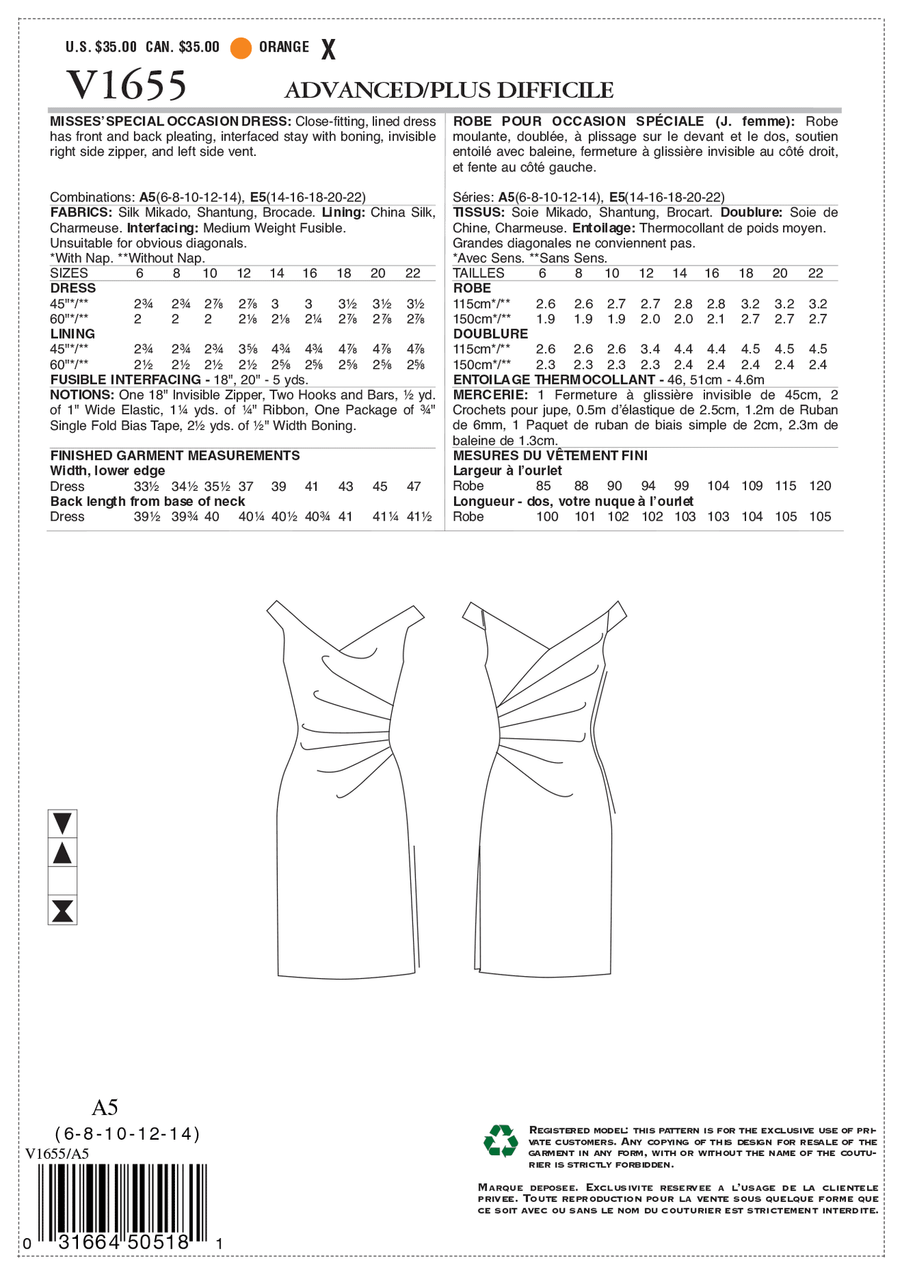 Vogue Schnittmuster V1655 Damen Abendkleid von Bellville Sassoon