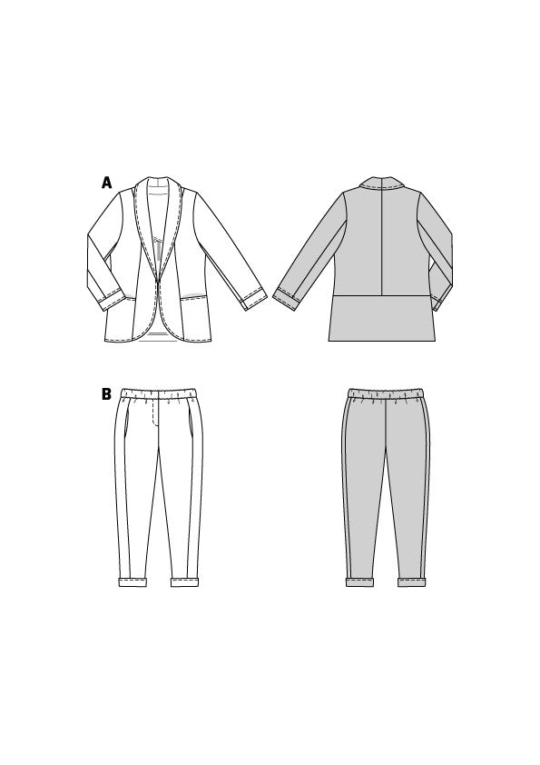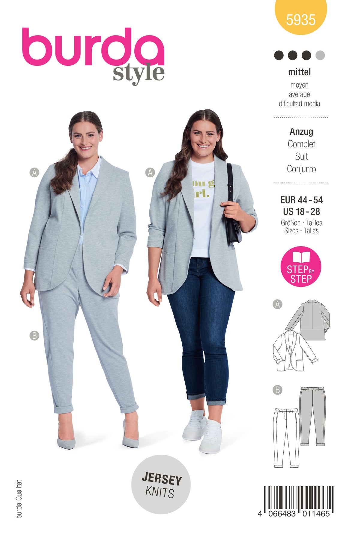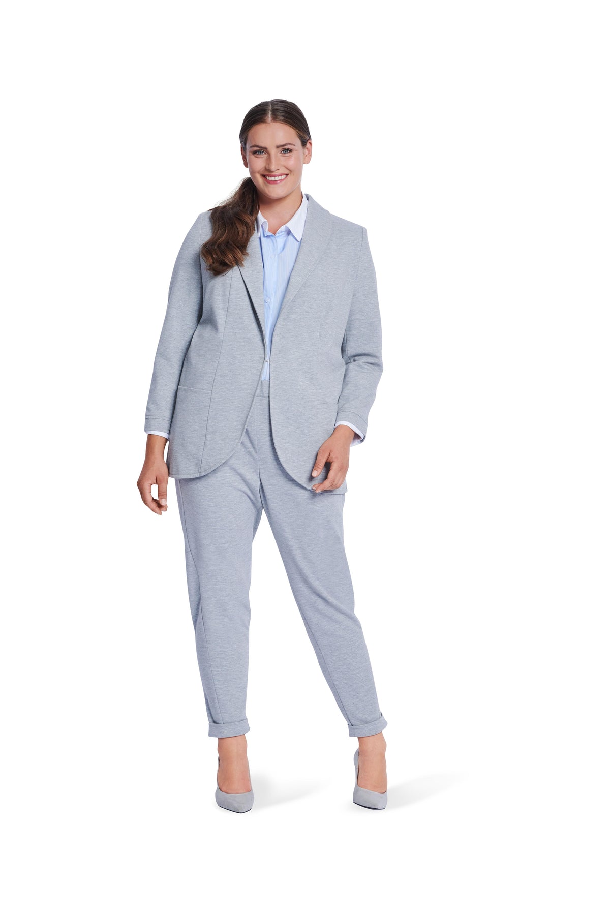 Toller Zweiteiler für Büro oder besondere Anlässe. Dank des elastischen Materials herrlich bequem zu Tragen. Die Jacke des Anzugs hat ein langen Schalkragen, die vord. Jackenkanten sind abgerundet. Die Teilungsnähte der Hose strecken optisch und haben Nahttaschen.